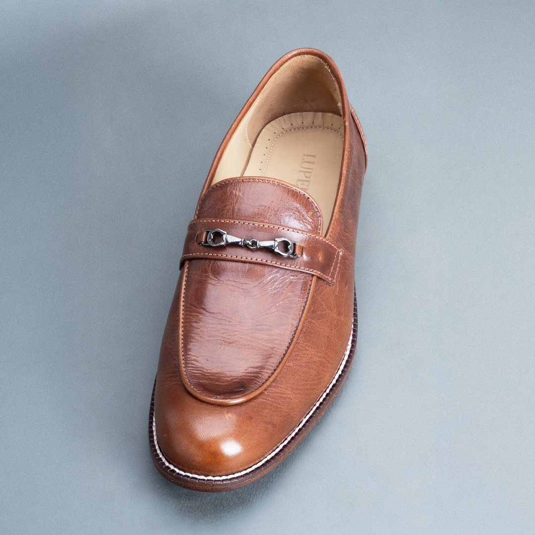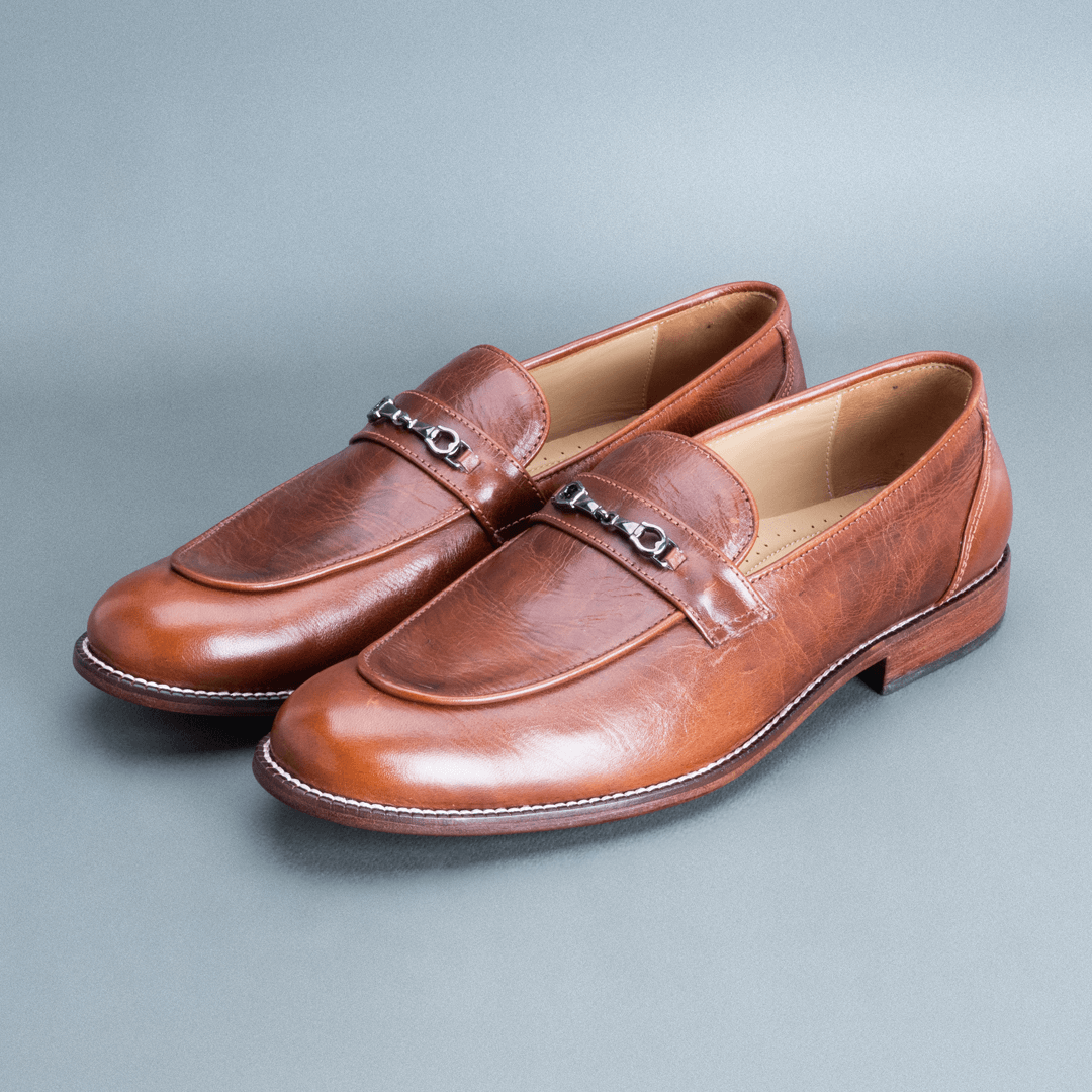 The Fang Bit Loafer – Tan presents a lighter, more relaxed take on a classic horsebit loafer. Crafted in smooth full-grain leather, its tan finish brings a softer visual tone while retaining a structured apron toe profile. The fang-style bit detail adds character, making it suitable for everyday wear without feeling overly formal.