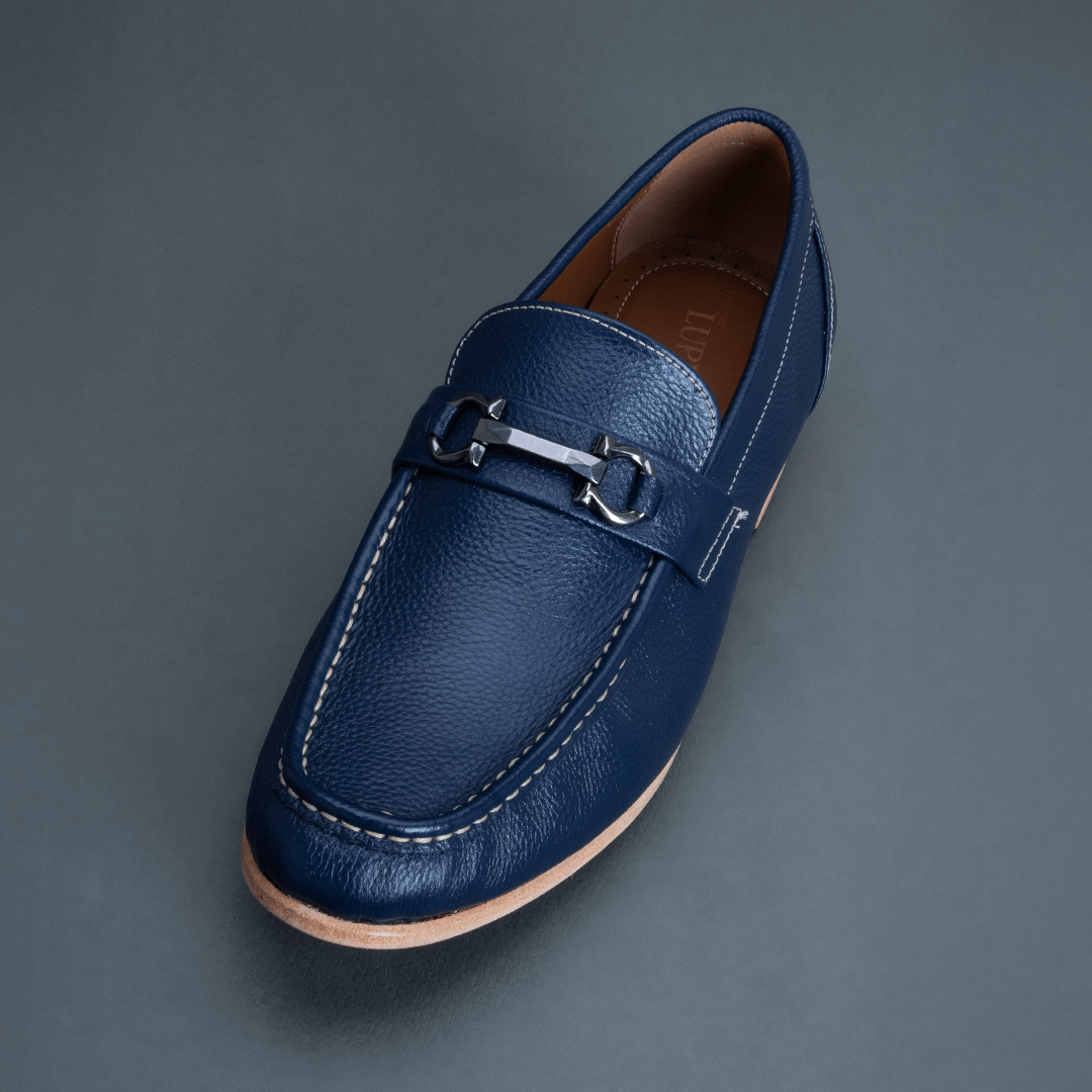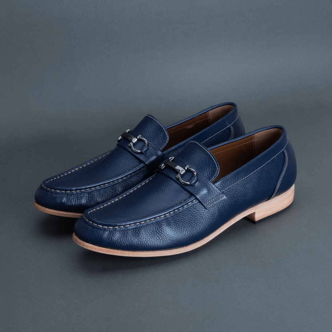 The Fang Horsebit Loafer – Navy Blue offers a clean and contemporary alternative to traditional formal footwear. Crafted in full-grain leather, its navy blue finish provides understated sophistication while the moc-toe design ensures comfort and ease.
