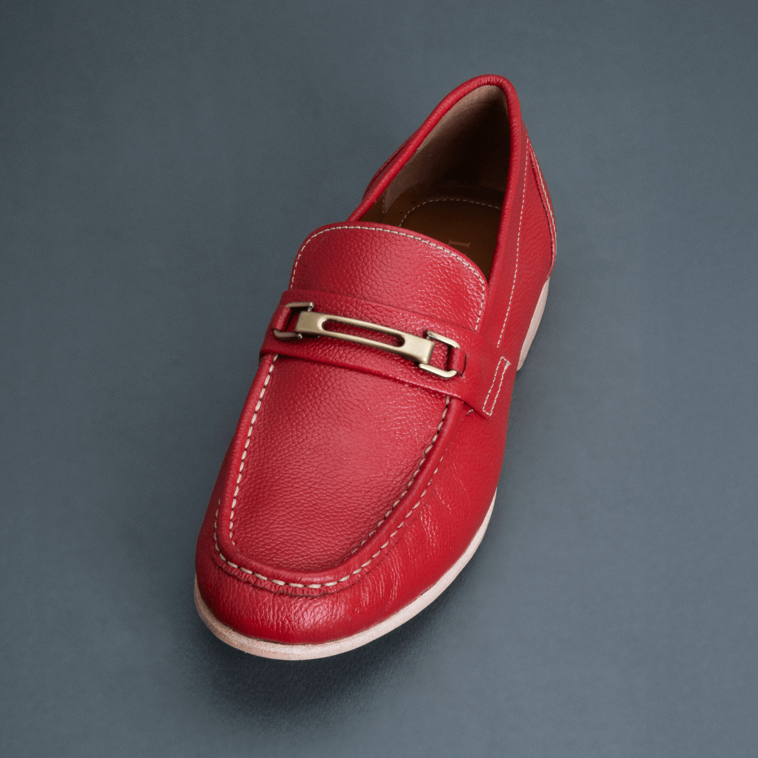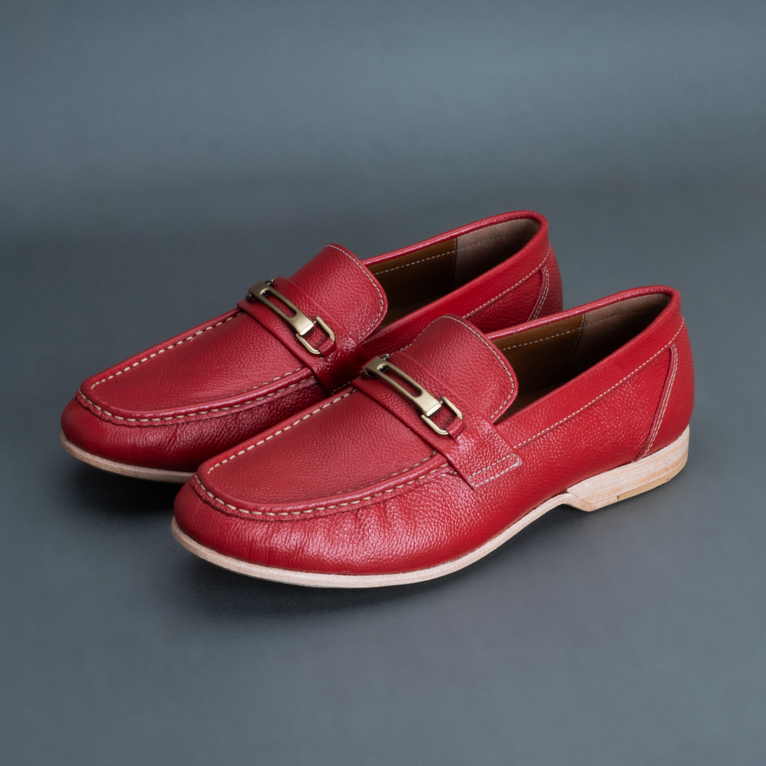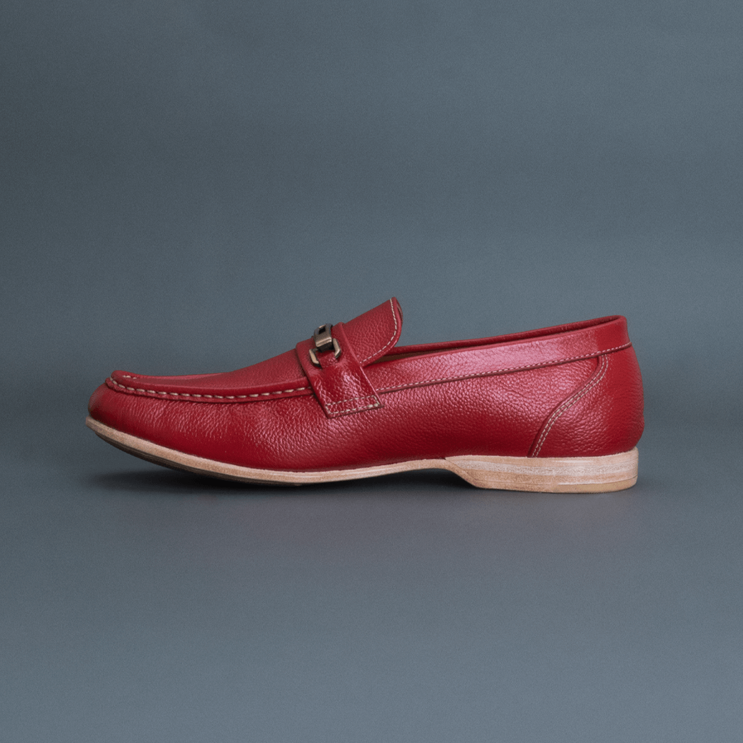 The Fang Horsebit Loafer – Red delivers a bold yet balanced expression of classic loafer styling. Crafted in smooth full-grain leather, its rich red tone adds visual impact while the moc-toe construction keeps the design relaxed and wearable. The horsebit detail adds refinement without excessive formality.